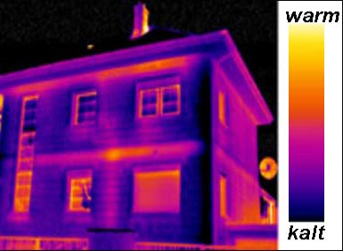 - Gebäudethermografie findet Kältebrücken an Wänden, Fenstern und Dach