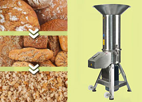 Mit dem Restbrotzerkleinerer können Bäckerei-Betriebe helles oder dunkles Restbrot und andere Backwaren ohne vorheriges Trocknen oder Einweichen zerkleinern. Zur Wiederverwertung wird das zerkleinerte Restbrot dann dem neuen Brot-Teig beigefügt.